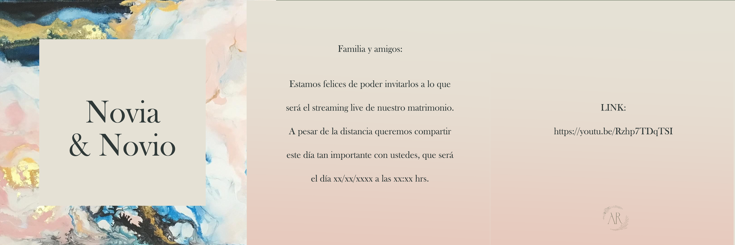 Hola! aquí están algunos diseños que he creado especialmente para que tus invitados puedan acceder al streaming a través de un link que estará adentro de la invitación, esta la pueden enviar por correo o bien por whatsapp. En el caso que ya tengan invitación y quieran usarla, es posible agregar el link al streaming.
